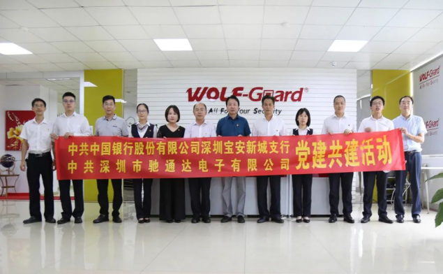 活動期間,中行領(lǐng)導(dǎo)一行在馳通達(dá)集團(tuán)董事長萬騰馳陪同下,實(shí)地參觀考察了馳通達(dá)黨建文化建設(shè)長廊和智慧安全防護(hù)演示廳,通過學(xué)習(xí)觀摩與雙向交流,進(jìn)一步統(tǒng)一了雙方黨員干部的思想認(rèn)識,更加深刻理解企業(yè)文化的內(nèi)涵。中國銀行深圳寶安支行鐘俊副行長對馳通達(dá)黨支部建設(shè)成果給予了充分肯定,對馳通達(dá)很早就獲得深圳市、區(qū)、街道“兩新工委先進(jìn)基層黨組織、街道先進(jìn)基層黨組織”等眾多榮譽(yù)表示贊賞。馳通達(dá)集團(tuán)董事長萬騰馳表示,馳通達(dá)黨支部已成為教育黨員職工“爭先創(chuàng)優(yōu)”的重要陣地,馳通達(dá)始終堅(jiān)持“把黨員培養(yǎng)成骨干、把骨干發(fā)展為黨員”的用人理念,讓馳通達(dá)黨員和企業(yè)員工時(shí)刻感受到黨的溫暖。此舉與中國銀行深圳新城支行黨支部的理念不謀而合,作為黨建結(jié)對共建單位,雙方約定將以此次聯(lián)創(chuàng)為契機(jī),加強(qiáng)黨組織與黨員溝通交流,尋求價(jià)值認(rèn)同、資源共享、優(yōu)勢互補(bǔ),促進(jìn)銀企構(gòu)建戰(zhàn)略伙伴關(guān)系,在國外疫情防控持續(xù)的情況下,對結(jié)對共建單位給予授信額度支持,有效服務(wù)銀企轉(zhuǎn)型創(chuàng)新發(fā)展,實(shí)現(xiàn)合作共贏,進(jìn)一步夯實(shí)黨建工作基礎(chǔ)。