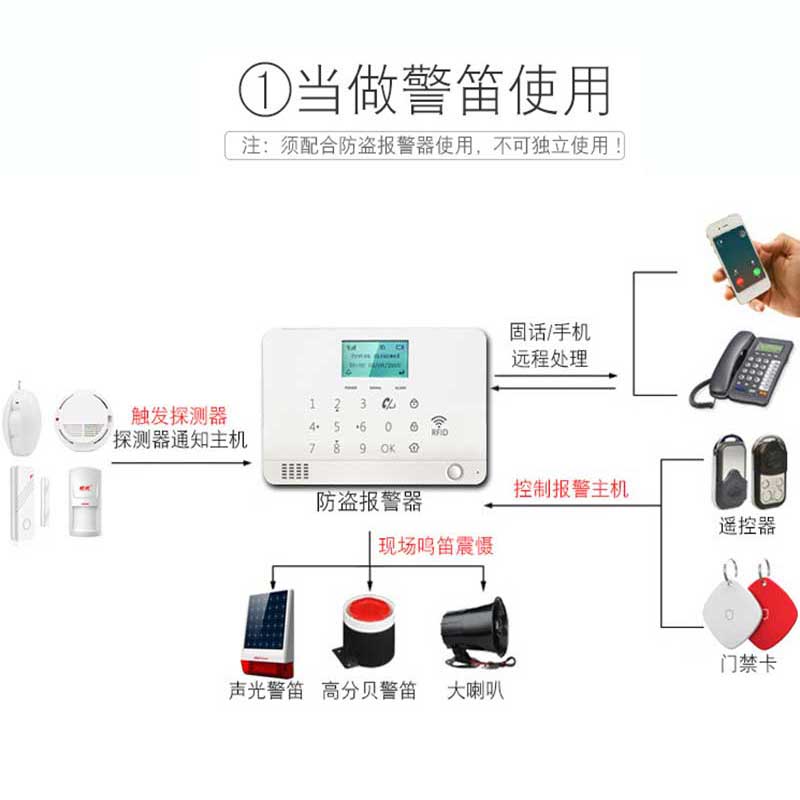 報警套裝:主機*1,門磁*1,遙控器*2,電源*1 ,說明書*1