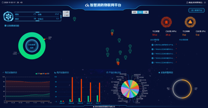 馳通達電子智慧物聯(lián)網(wǎng)云平臺是用于智能設施的監(jiān)控、管理和維保的平臺軟件?;谠破脚_的架構,結合物聯(lián)網(wǎng)+互聯(lián)網(wǎng)技術將分散在各處的智能設備(感煙火災探測器、門磁、紅外探測器等)統(tǒng)一實時監(jiān)管,并將收集到的數(shù)據(jù)進行智能化分析,在城市消防設備巡安檢、實時監(jiān)測、維護及綜合管理等方面,提供全面、準確、及時的信息反饋。監(jiān)控中心可支持APP、短信、微信公眾號、電話等多平臺報警方式。